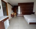 – 1 Suíte principal com varanda ampla e vista para a piscina do condomínio (totalmente mobilada e com armários embutidos)